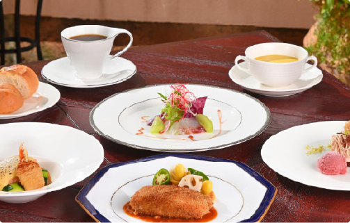フレンチをゆったり味わうフルコースと仲間と楽しむブッフェのパーティースタイルからお選びいただけます。